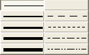 Klicken Sie auf das entsprechende Feld. Es öffnet sich eine Palette von Stilen und Dicken, die nur mit dem Stil durchgezogen kombinierbar sind. Die ausgewählte Linienart wird gedrückt angezeigt. Im ersten Feld rechts befindet sich die Linienart unsichtbar, mit der Sie z.B. Schraffuren "einrahmen".